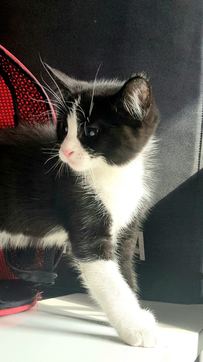 Domino, Chaton mâle de 3 mois. Abandonné à l’association. Identifié par puce électronique, vacciné, déparasité et vermifugé