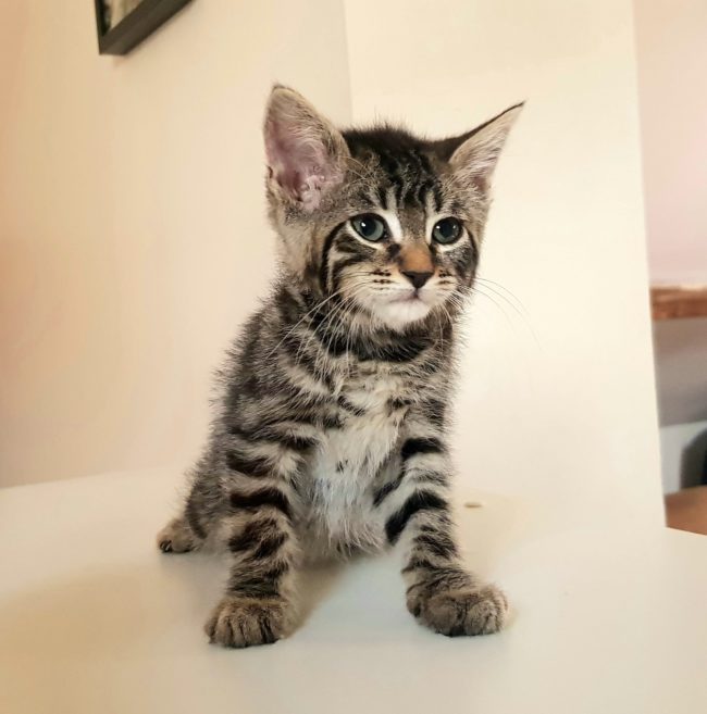 Akela . Chaton de 3 mois. Je suis récemment orphelin avec mes frères et sœurs, nous avons perdu notre maman il y a 1 semaine Je suis un peu timide, mais une fois dans les bras je me laisse papouiller, jusqu’à m’endormir. J’adore aussi jouer ! Identifié, vacciné, déparasité, vermifugé