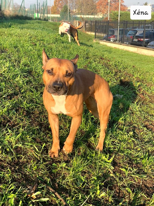 Je me présente je m’appelle Xena, je suis un staffi. J’ai les yeux marrons, un joli pelage fauve et blanc au niveau du buste. Je suis toute petite par ma taille mais j’ai un très grand Coeur, je requiers donc beaucoup d’affection et de câlins. Je suis très intelligente et bien dressée. J’ai beaucoup d’énergie…