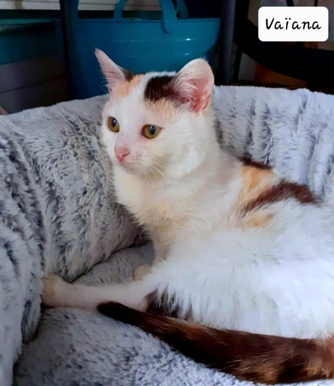 Chatonne de 5 mois, qui adore se faire câliner, papouiller. Elle est timide avec les inconnus. ** Identifiée par puce électronique, primo-vaccinée, déparasitée, vermifugée. Frais d’adoption : 180e