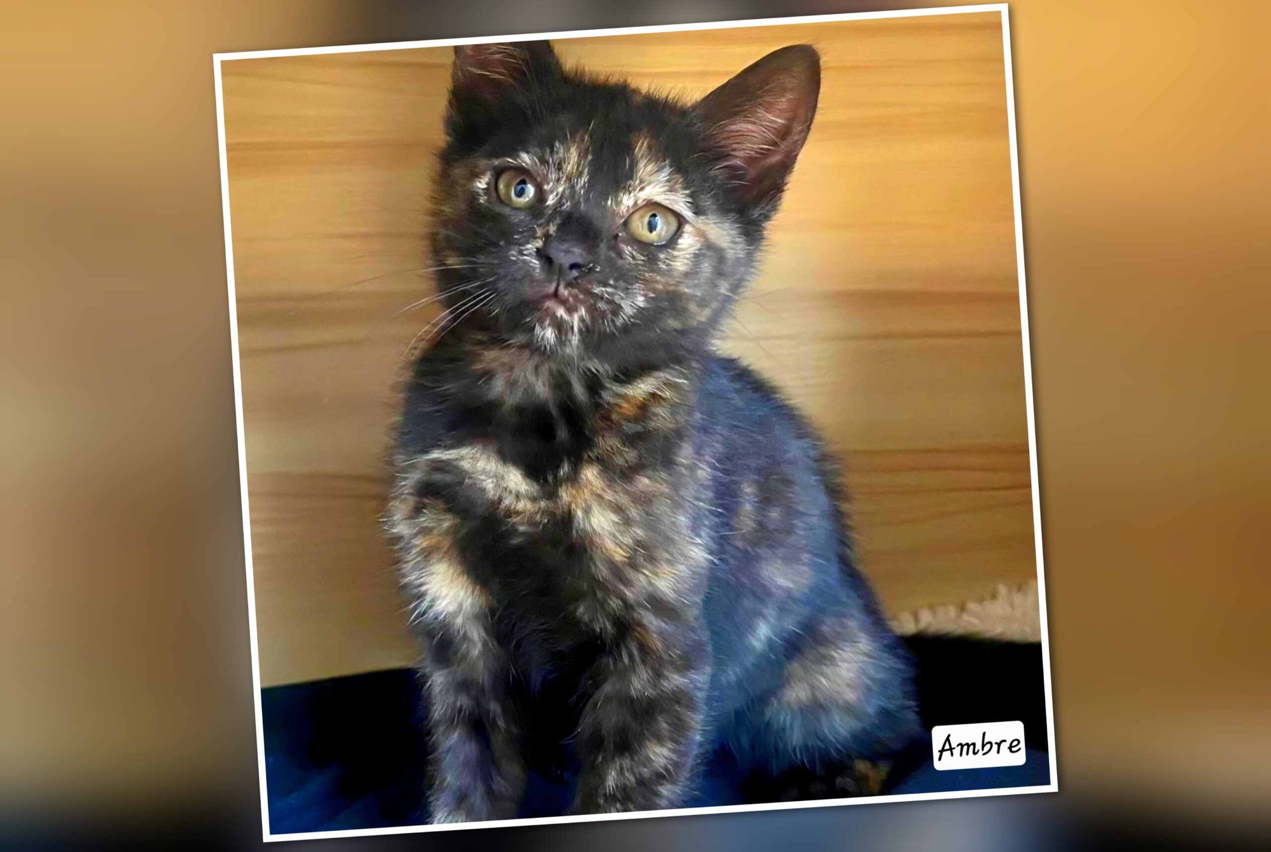 Ambre, 2 mois, est une adorable chatonne pleine de tendresse et de vie. Très câline, affectueuse et proche de l’humain, elle s’entend aussi parfaitement avec les autres chats.