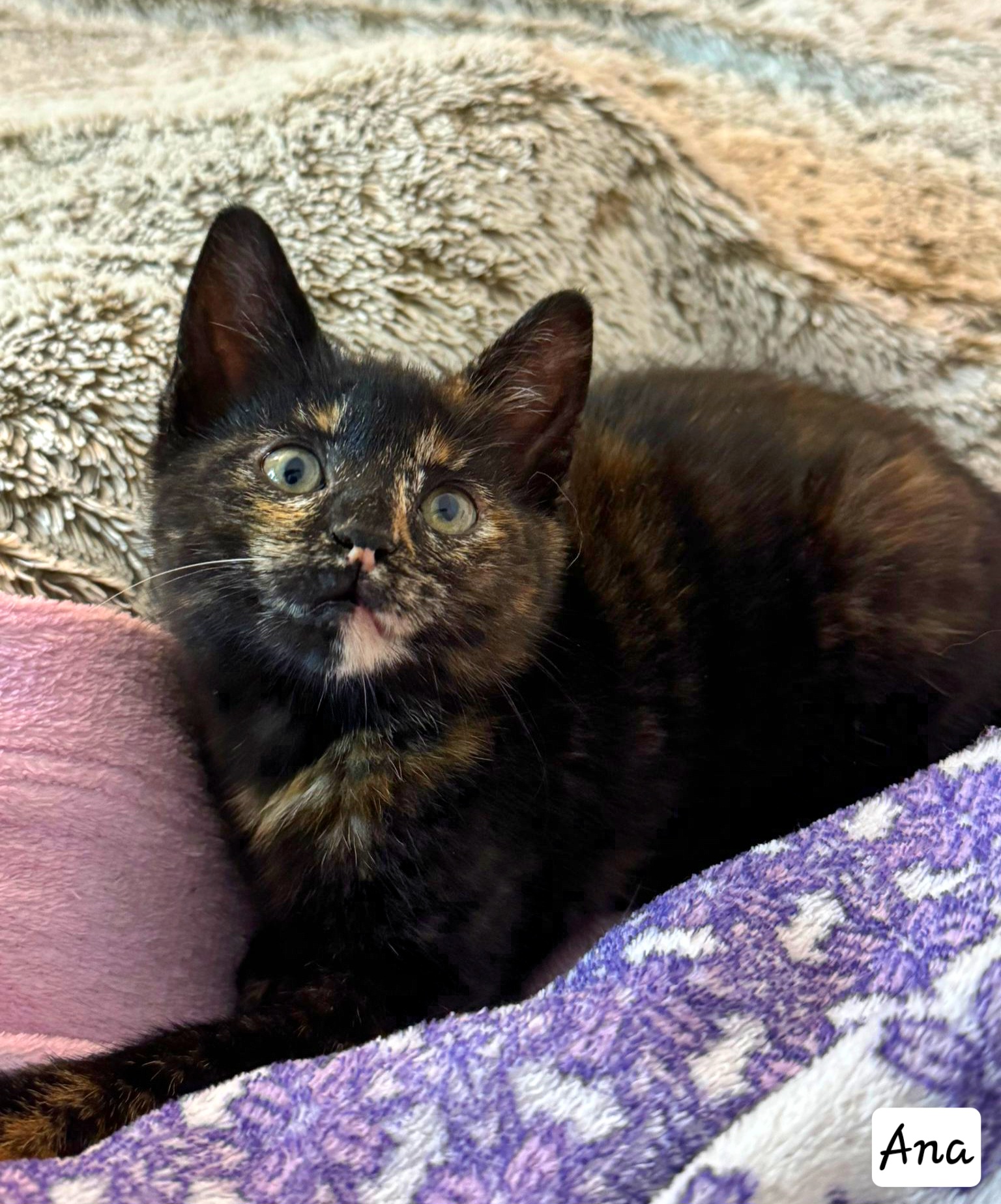 Ana est une adorable chatonne de 2,5 mois. Adoptable fin décembre. Elle est très à l’aise, affectueuse et câline. Elle adore jouer aussi. OK chat. Sa soeur Maria est également disponible à l’adoption.