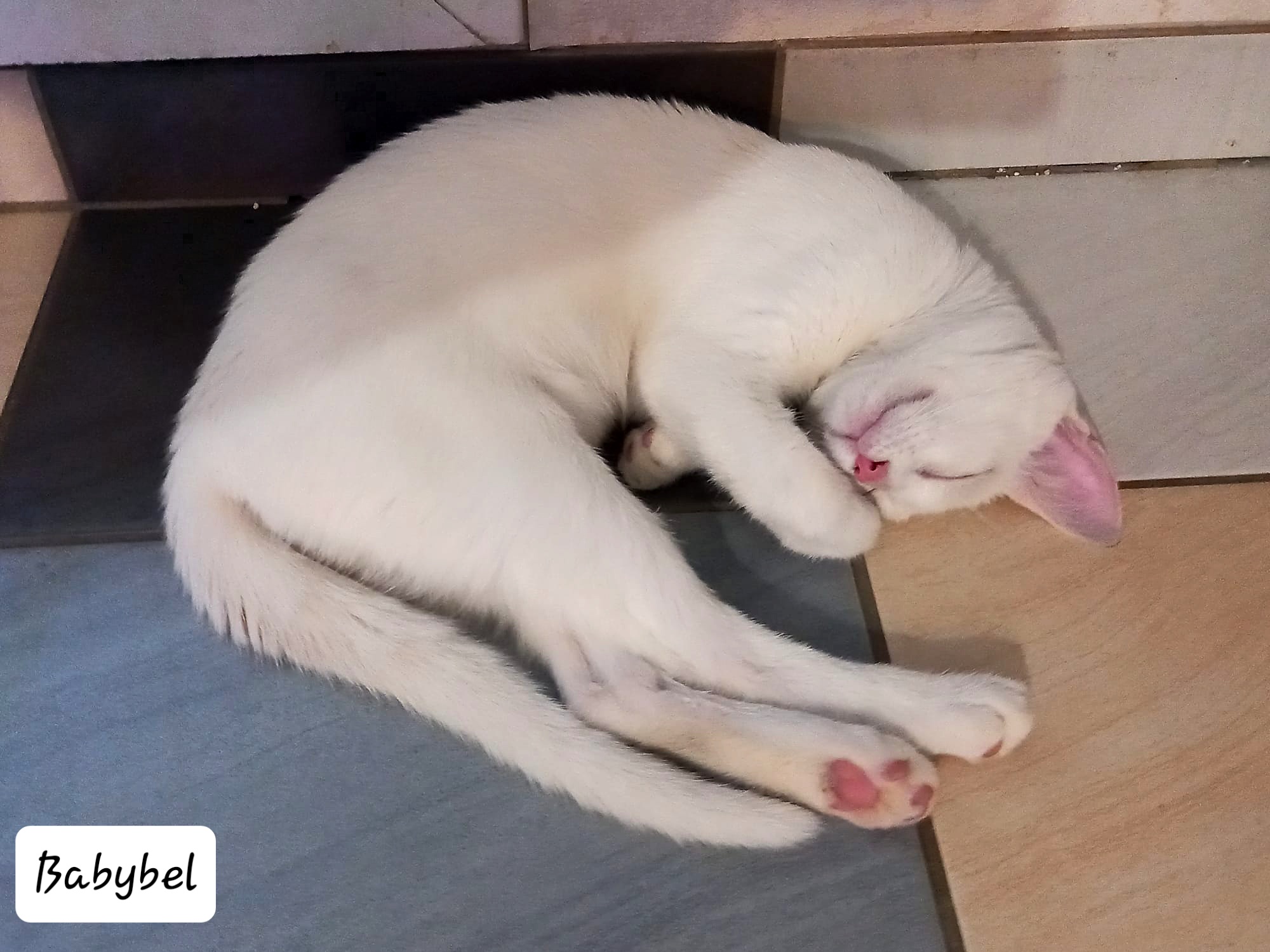 Chatonne de 4 mois, très calme, elle adore les câlins, également gourmande (elle aime tout goûter quand on mange). Très sociable. OK chat.