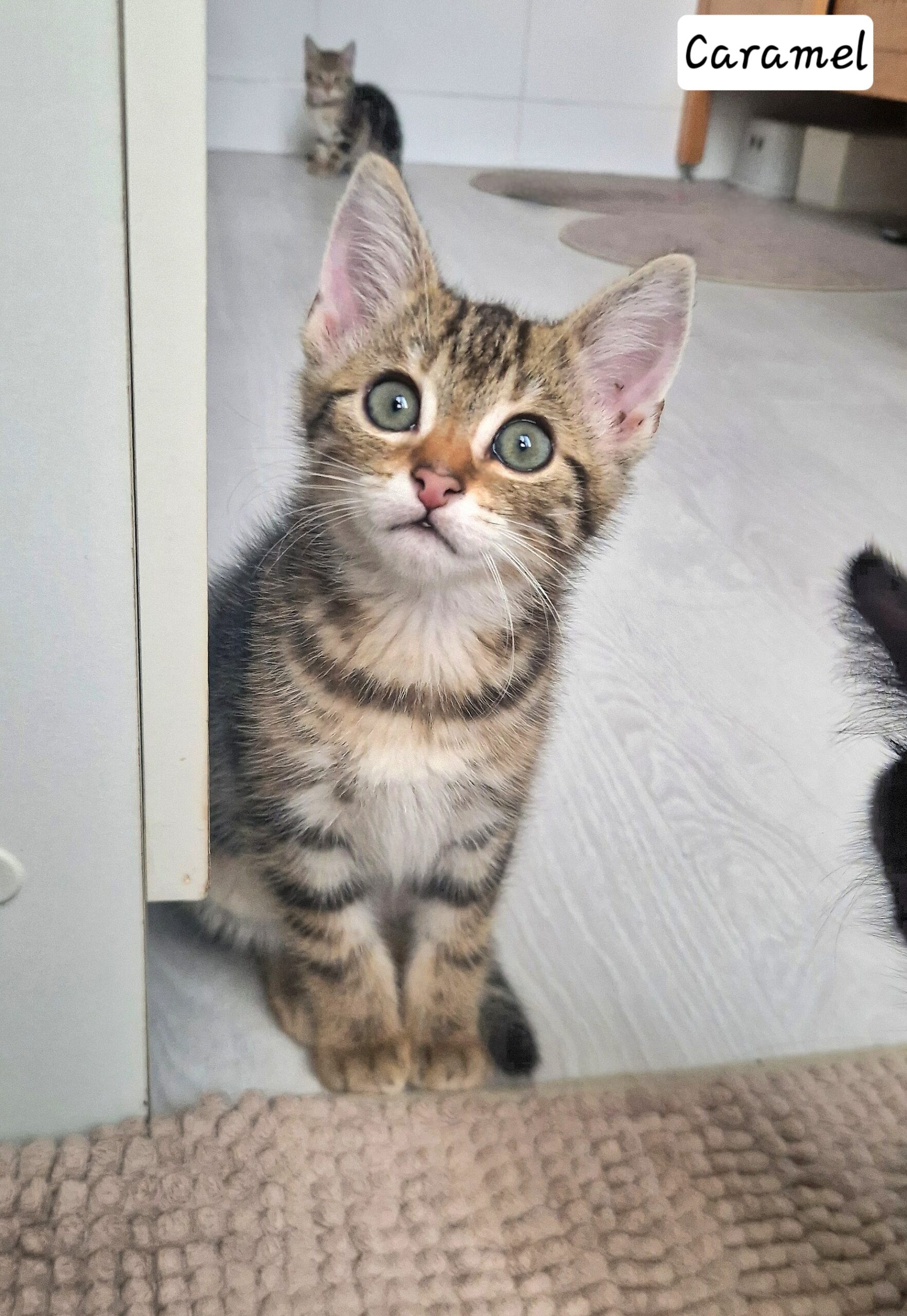 Caramel est un adorable chaton de bientôt 3 mois. Il adore les câlins, et jouer avec toutes sortes de jouets (plumes, grelots) OK chat.