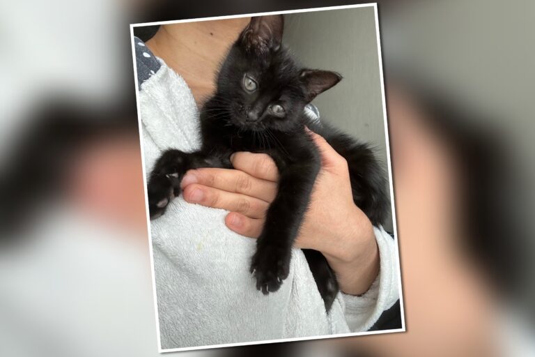 Petit chatonne d’environ 3 semaines, déposée à l’association un soir… Trouvée par plusieurs personnes au fond d’un trou étroit et profond, à cause de ses pleurs. Ils ont réussi à la récupérer non pas sans mal après plusieurs heures… Aucun signe d’une maman aux alentours. Nous l’avons donc pris en charge et placée en famille…