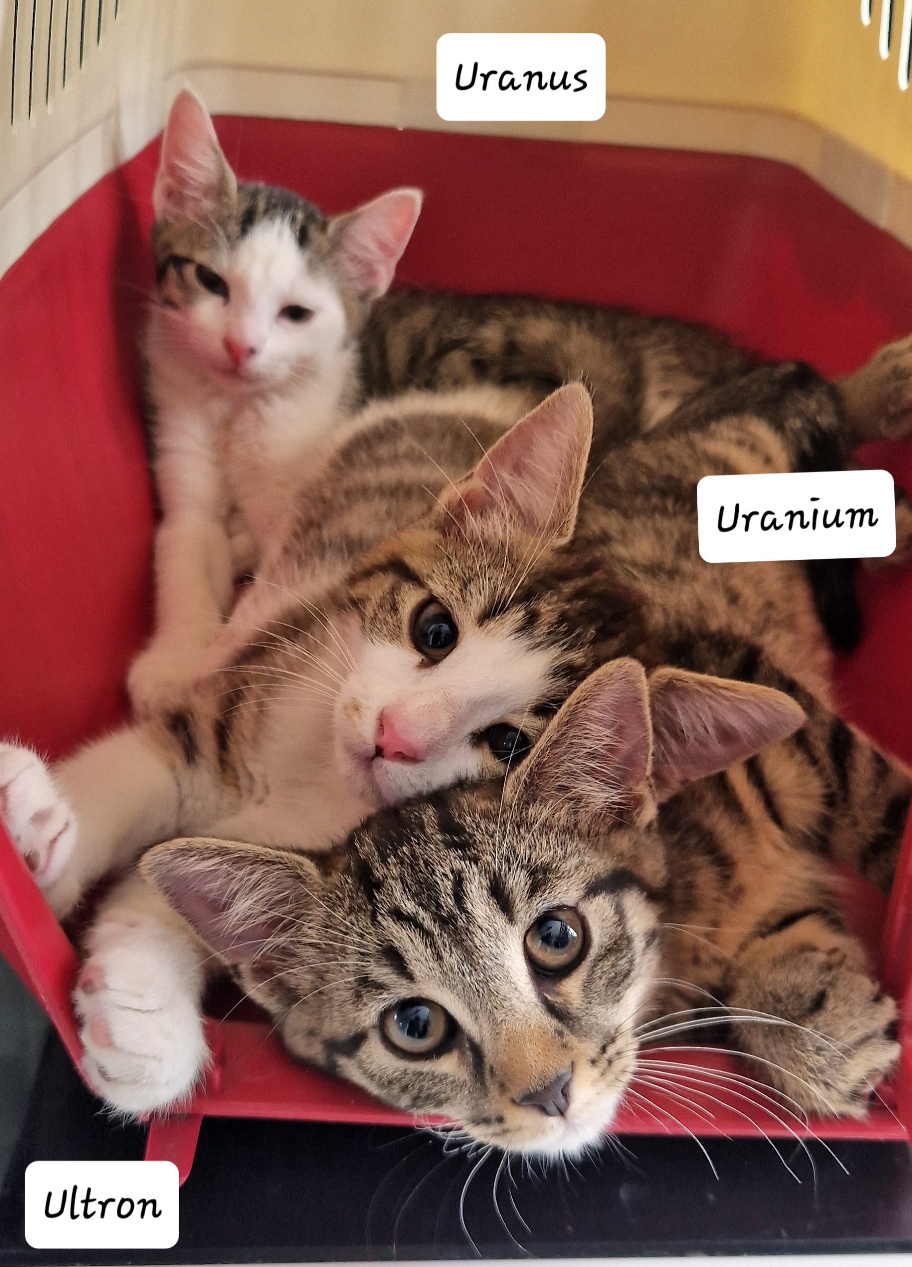 3 frères, petits chatons de bientôt 3 mois, qui aime jouer et qui adore les papouilles ! OK chat et enfant. A l’aise