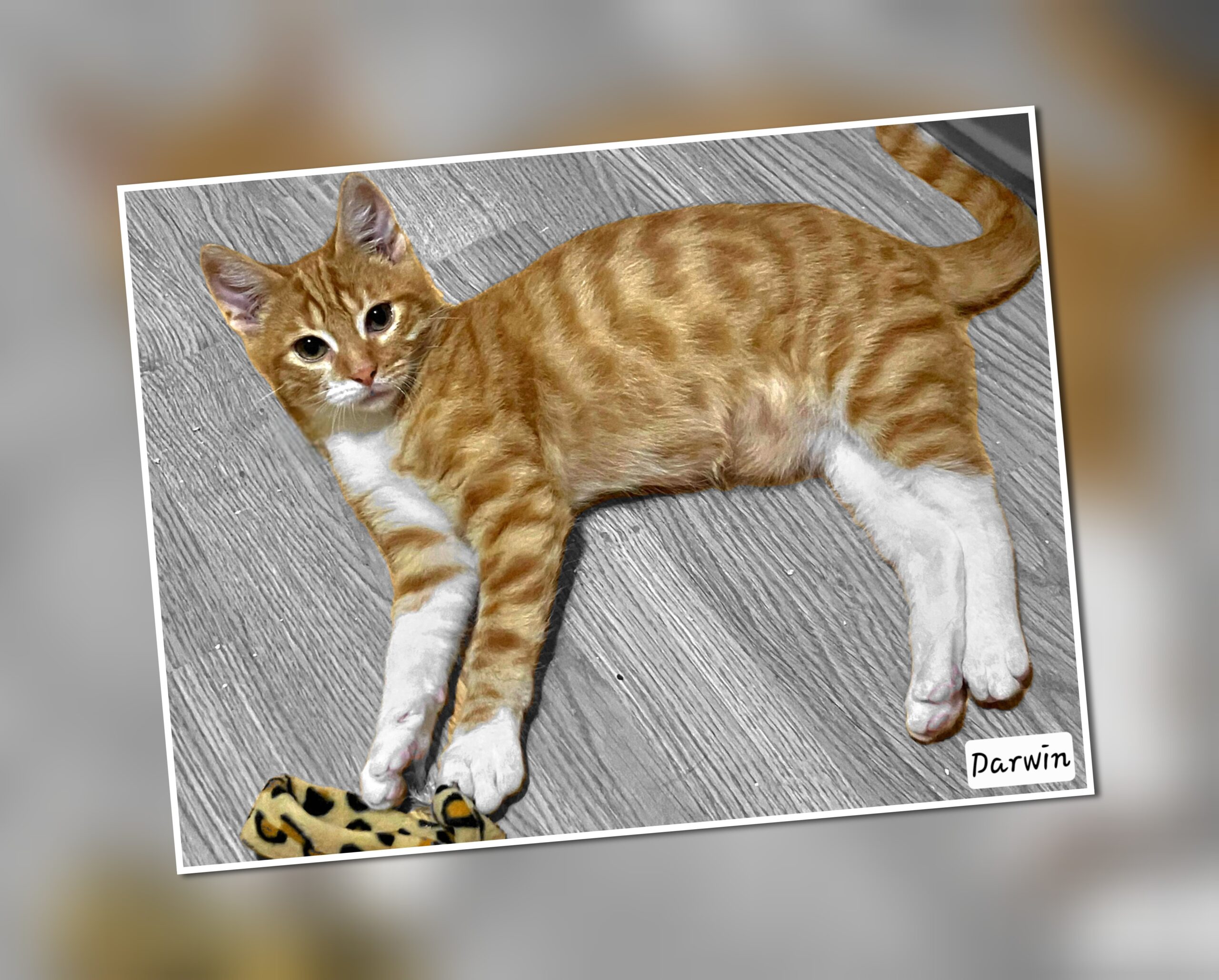 Darwin est un adorable chaton à la fois joueur et très affectueux 💕 Il aime les moments de complicité et les séances de jeu, mais apprécie aussi le calme pour se reposer paisiblement.