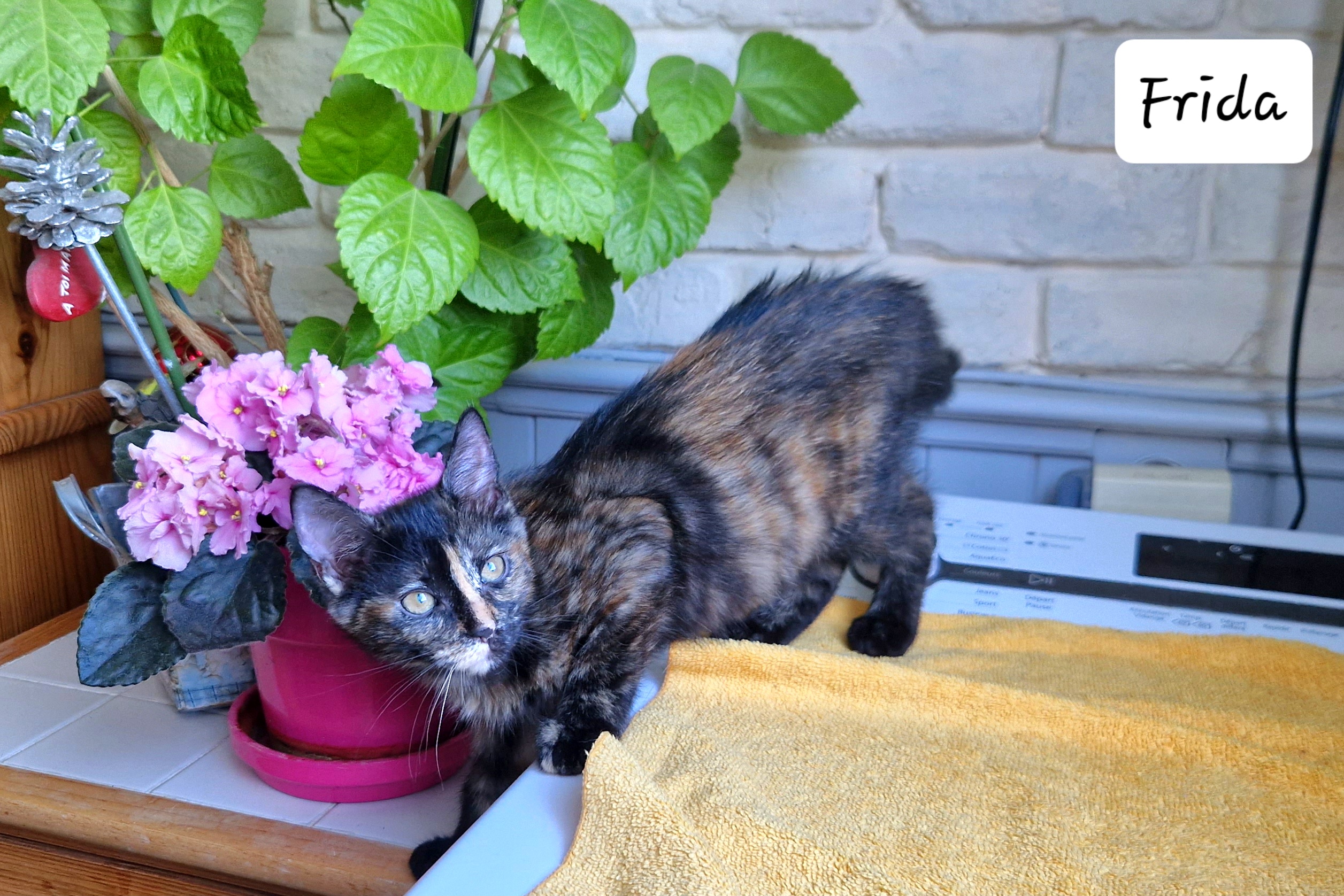 Petite chatonne de 3 mois. Affectueuse et caline. Elle aime jouer avec toutes sortes de jouets à plumes.