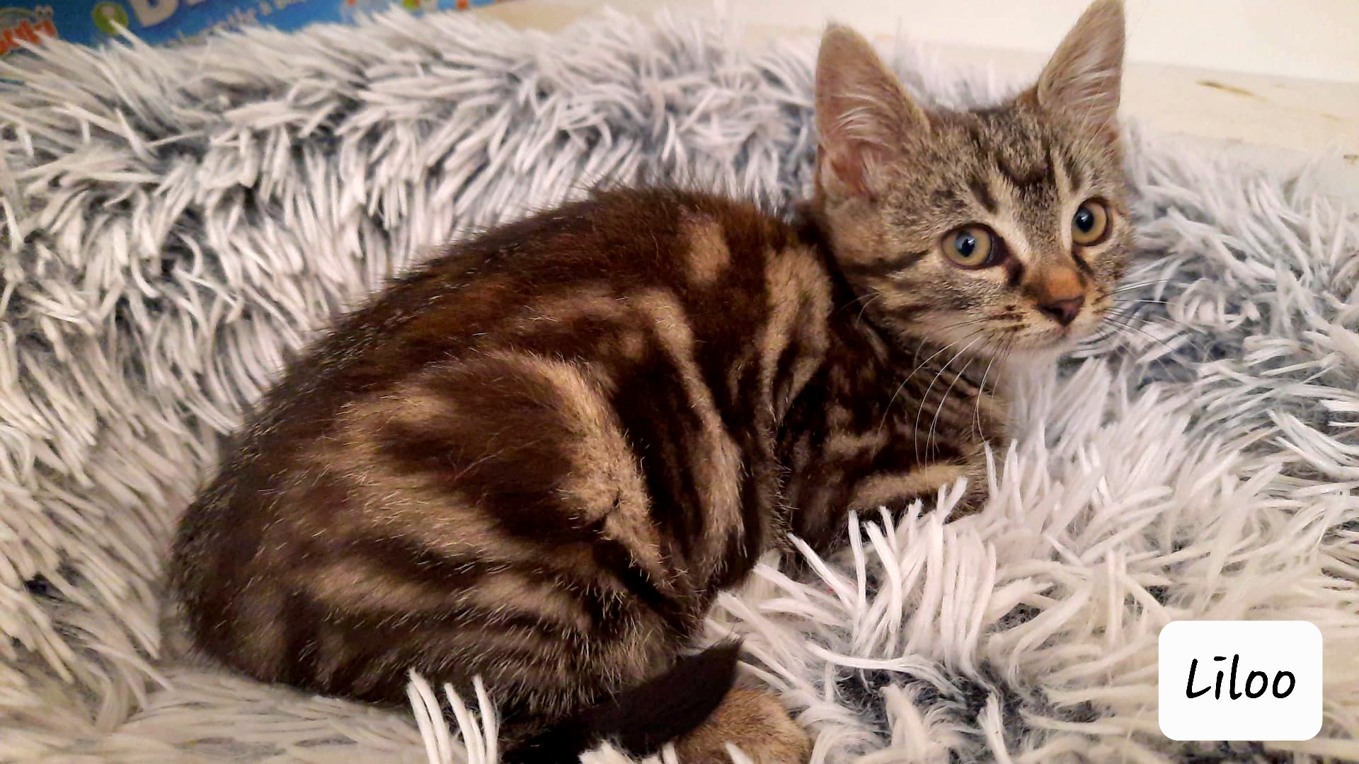 Chatonne de 3 mois, bien dans ses pattounes. Elle aime beaucoup jouer, ainsi que les papouilles.