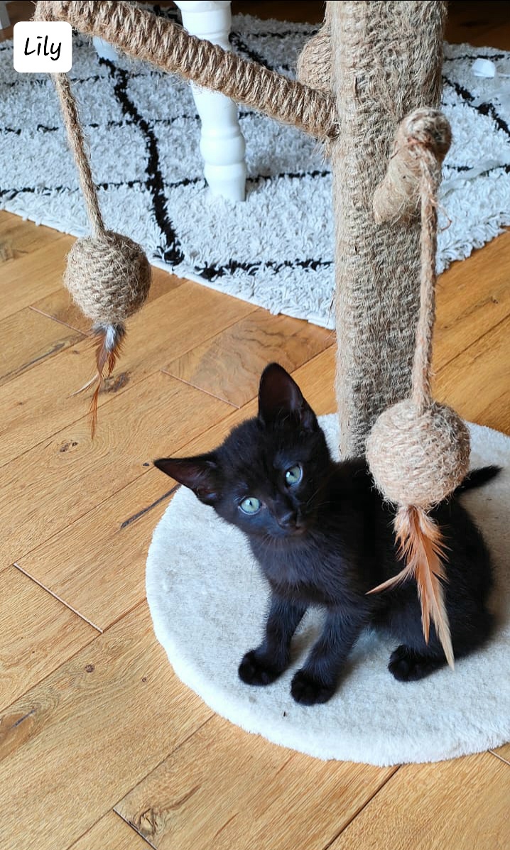 Chatonne de 3 mois qui aime jouer mais qui est aussi très affectueuse.