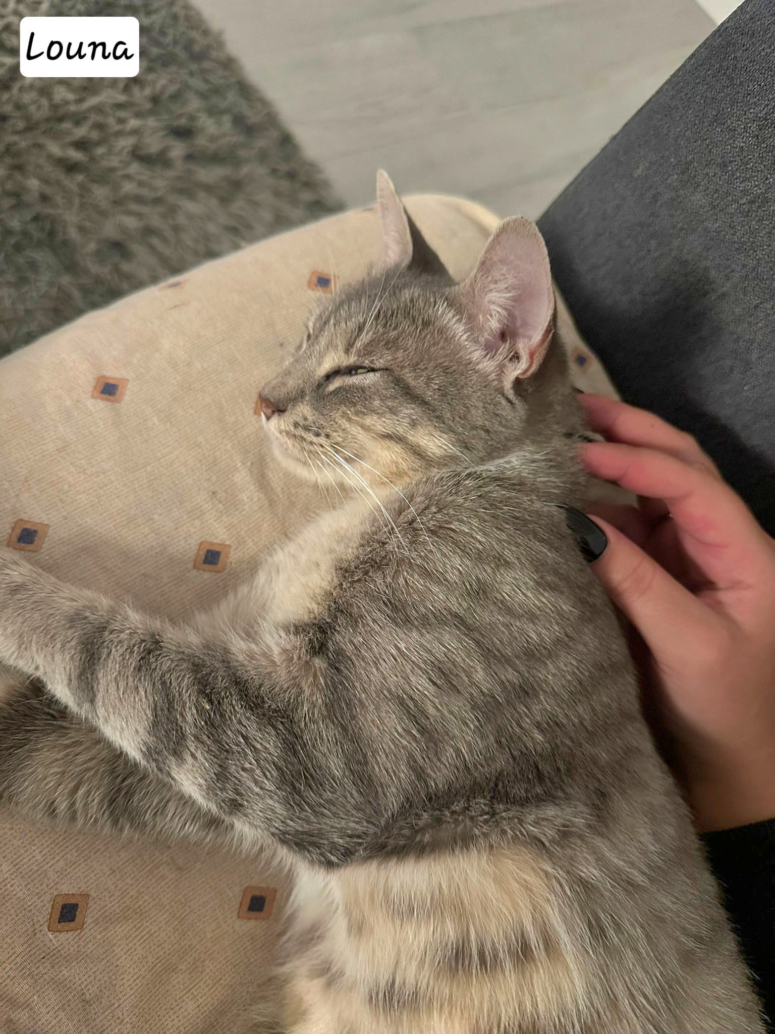 Louna est une adorable chatte d’1 an, très gourmande et câline. Elle aime se blottir contre ses humains et apprécie les moments de tendresse. Louna a besoin d’un foyer doux et attentionné où elle pourra recevoir beaucoup d’amour et de câlins.