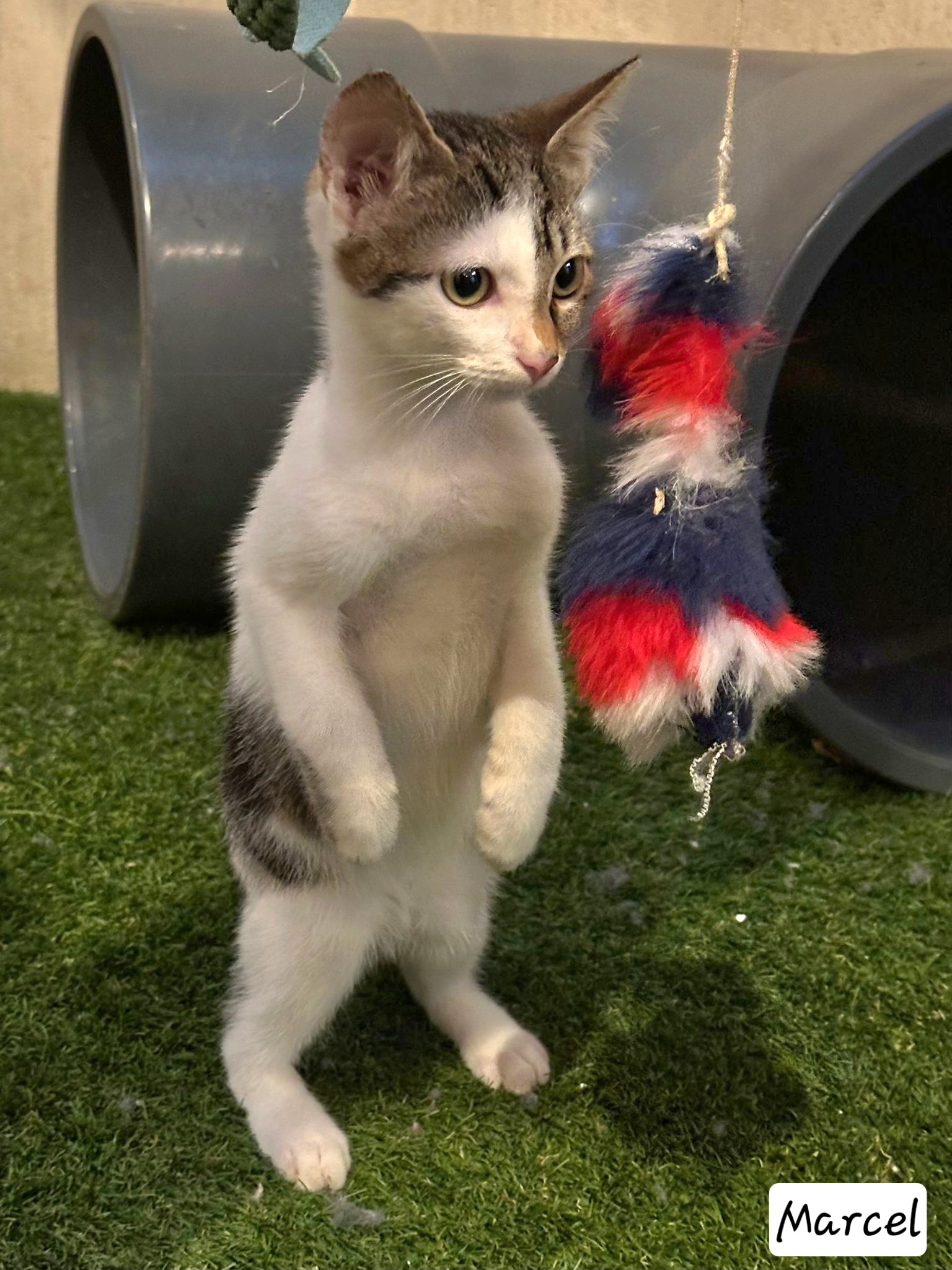 Marcel est un adorable chaton de bientôt 3 mois. Il adore les câlins, et jouer avec toutes sortes de jouets à plumes.