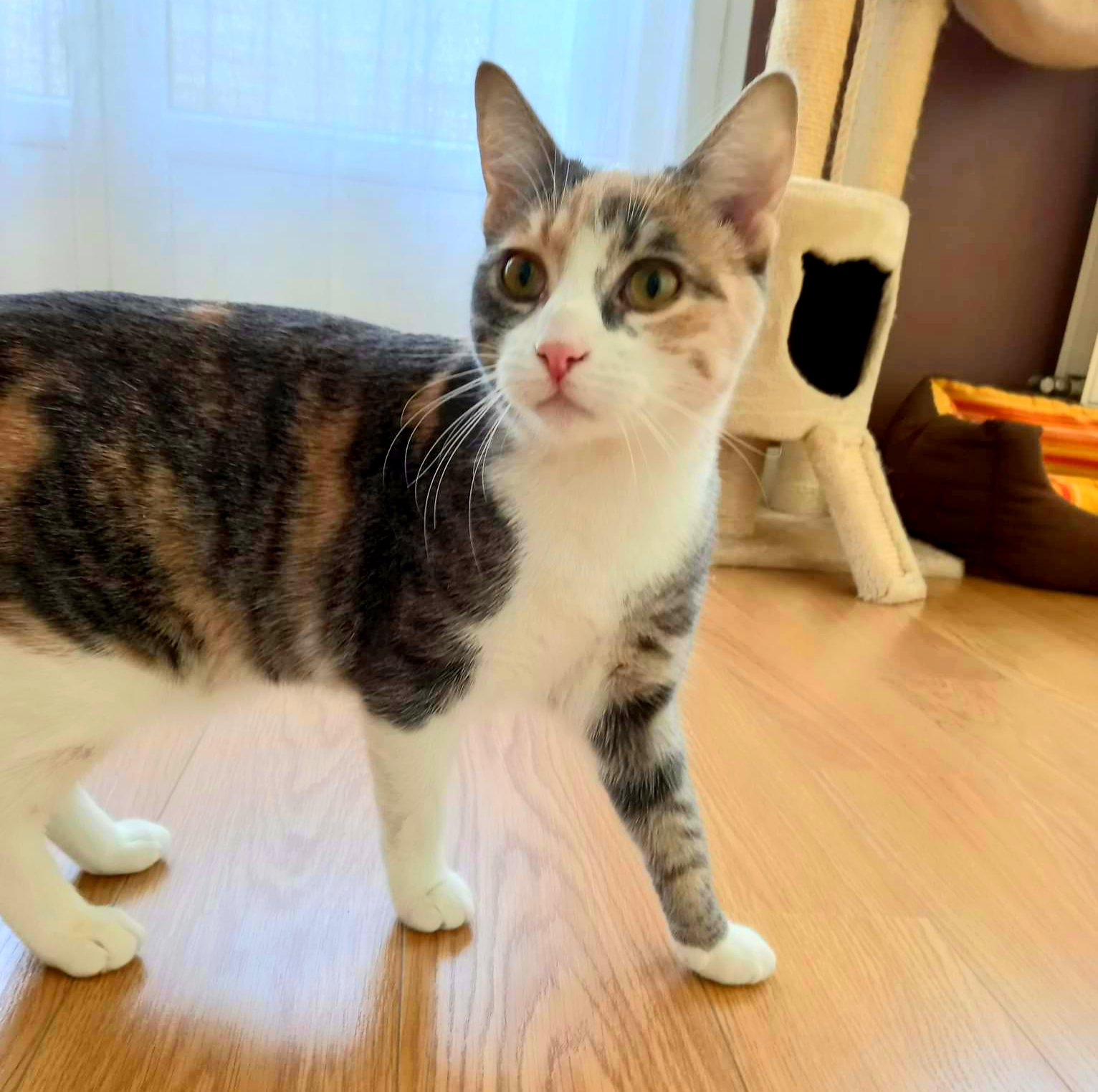 De tempérament plutôt calme, elle apprécie jouer avec des copains chats.