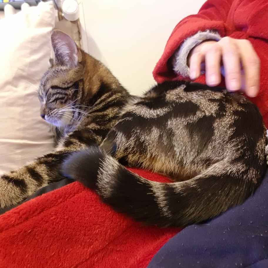 Elle apprécie énormément les parties de jeux, ainsi que les séances papouilles sur le canapé.