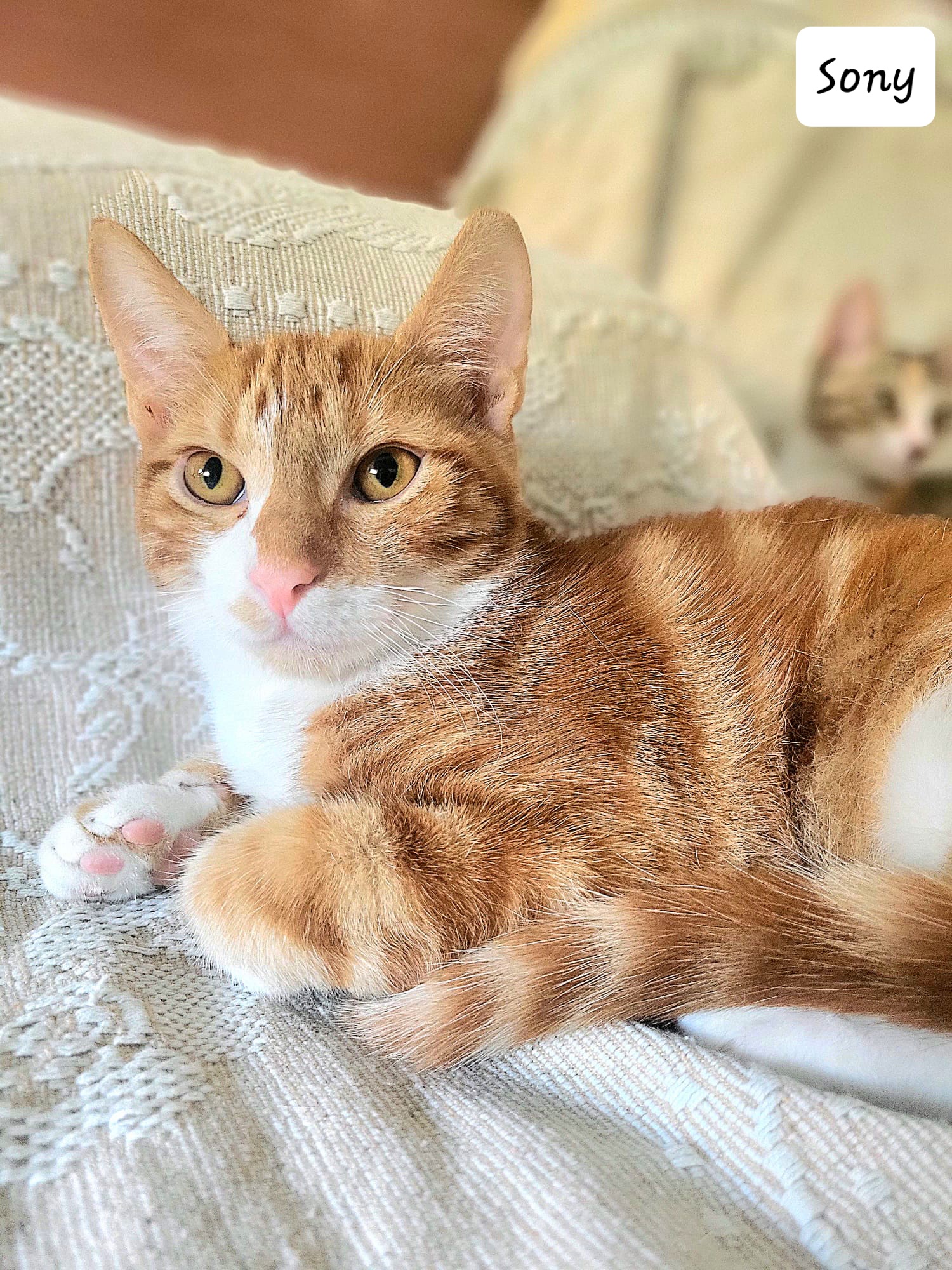 Sony est un gentil chaton de 5 mois. Il est timide au début avec les inconnus, mais il ne refuse jamais les câlins bien au contraire. Il adore ça ! Et si vous agitez un plumeau il sera heureux de venir jouer avec vous.