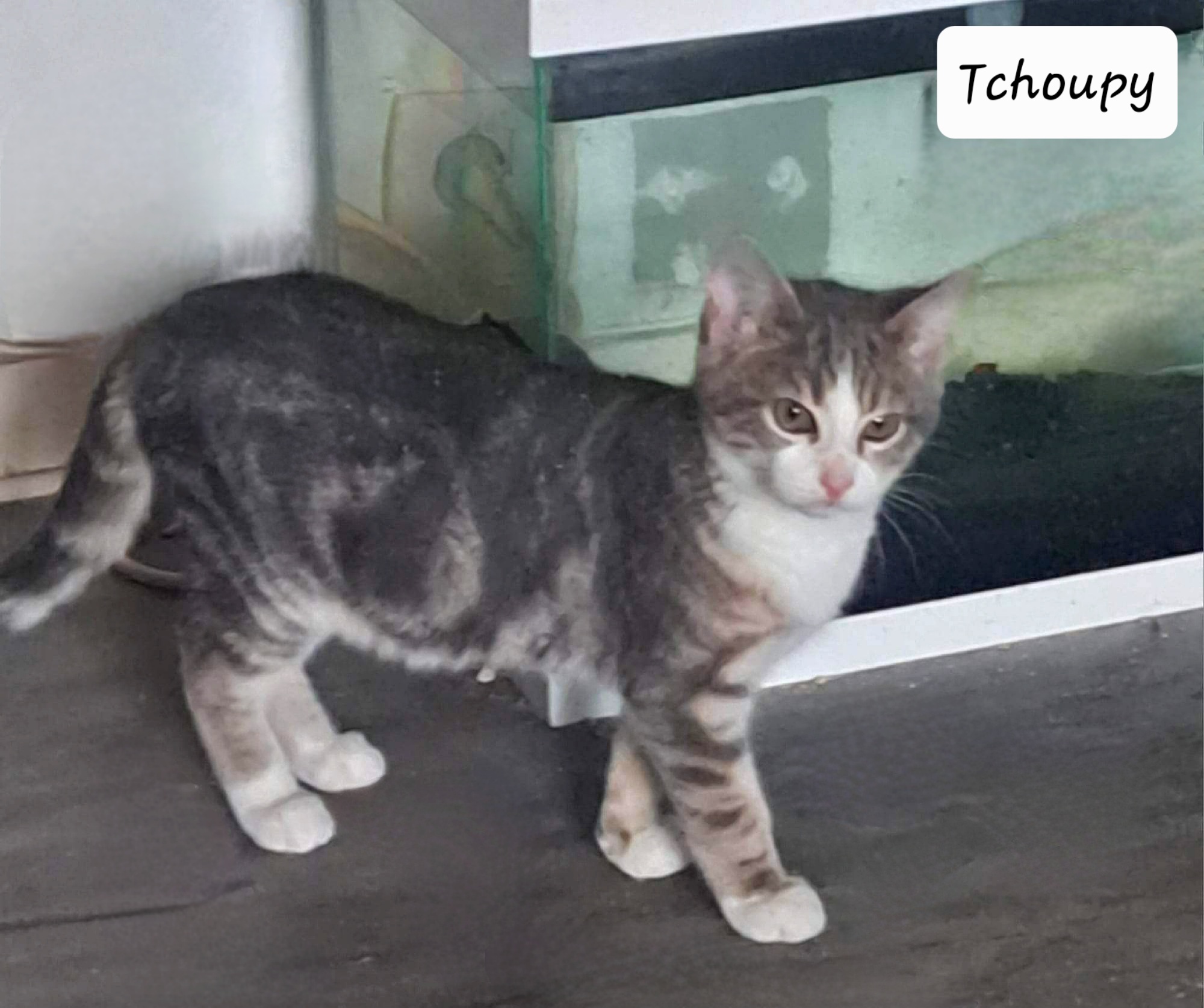 Il apprécie jouer et ronronne fort quand il se fait papouiller.