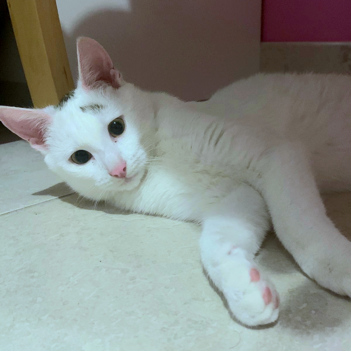 Il est très câlin, avenant, a tendance à suivre son maître partout dans la maison.