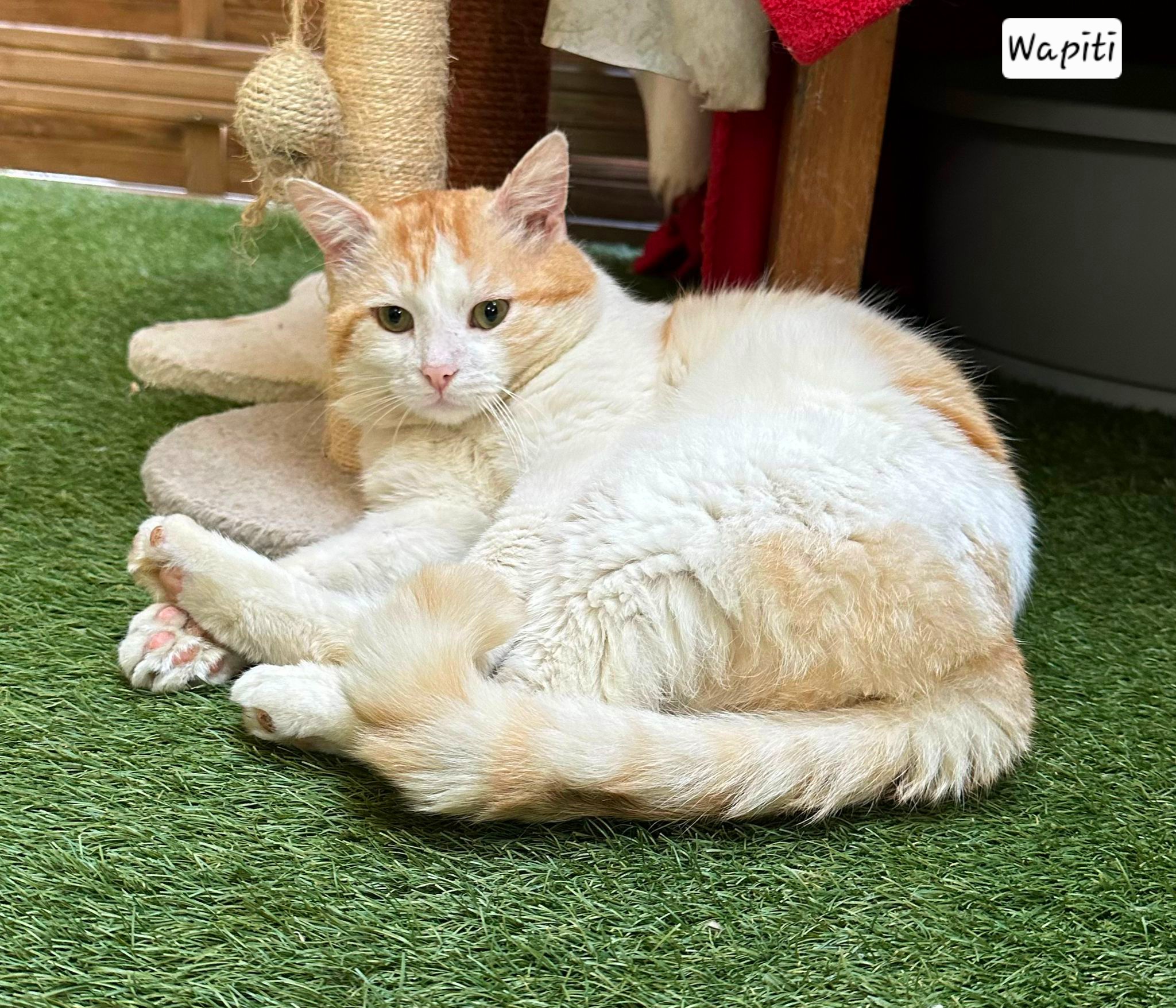 Wapiti est un adorable matou de 4 ans au tempérament très calme. C’est un véritable petit cœur sur pattes, toujours en demande de câlins et d’attention. Hyper affectueux, il adore les moments de tendresse et cherche une famille prête à lui offrir tout l’amour qu’il mérite.