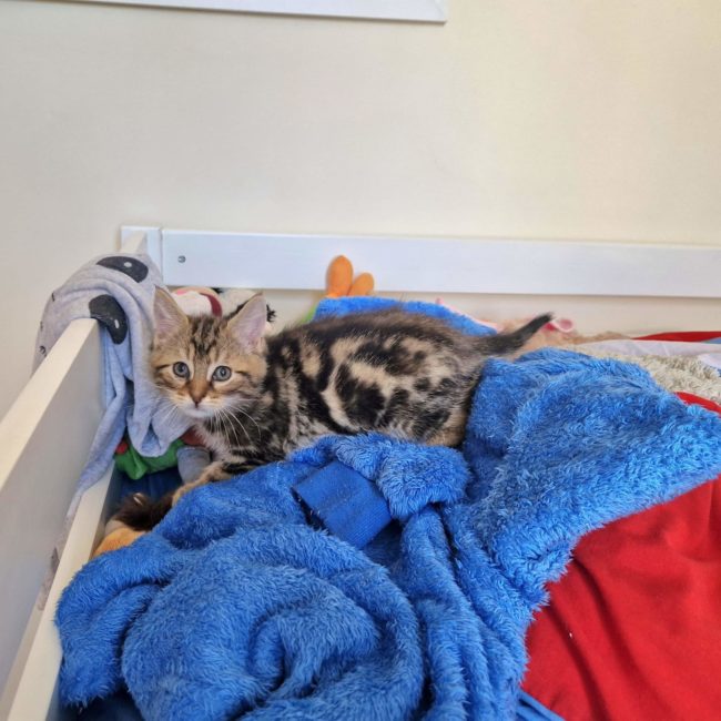 Disponible à la réservation, sera adoptable début juillet.Petit chaton tripate, qui déborde d’énergie !Il adore également les papouilles et les câlins. Partira : Identifié par puce électronique, primo-vacciné, déparasité, vermifugé
