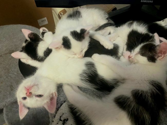 6 petits chatons adoptables à partir du 11 novembreRonrons, câlins, et parties de jeu au rendez-vousEn famille d’accueil sur Bezons. ***Partiront : Identifié par puce électronique, primo-vacciné, déparasité, vermifugé.***Frais d’adoption : 160€***Stérilisation obligatoire aux 6 mois du chaton