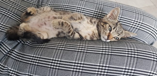 Adopté Tigrou Je suis un chaton de 3 mois, très affectueux, je viens réclamer les câlins ! Aussi joueur et très sociable. Doux avec les enfants, je recherche ma famille pour la vie. Une adoption avec ma sœur Kitty serait souhaitable mais nous pouvons également être adoptés séparément. Identifié par puce électronique, primo-vacciné, déparasité, vermifugé