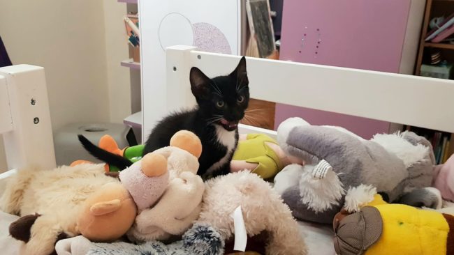 Adopté Kitty Je suis une chatonne de 3 mois, j’aime la compagnie et je suis joueuse, pas farouche ! Douce avec les enfants, je recherche ma famille pour la vie Une adoption avec mon frère Tigrou serait souhaitable mais nous pouvons également être adoptés séparément. Identifiée par puce électronique, primo-vaccinée, déparasitée, vermifugée