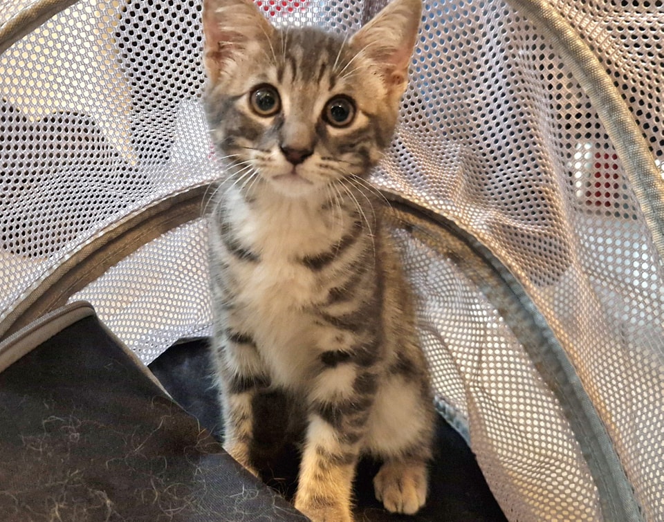 Le monsieur n’avait pas été consulté et ne souhaitait pas avoir de chaton, même s’il les aime bien. Mais pas de là à en avoir un à charge.