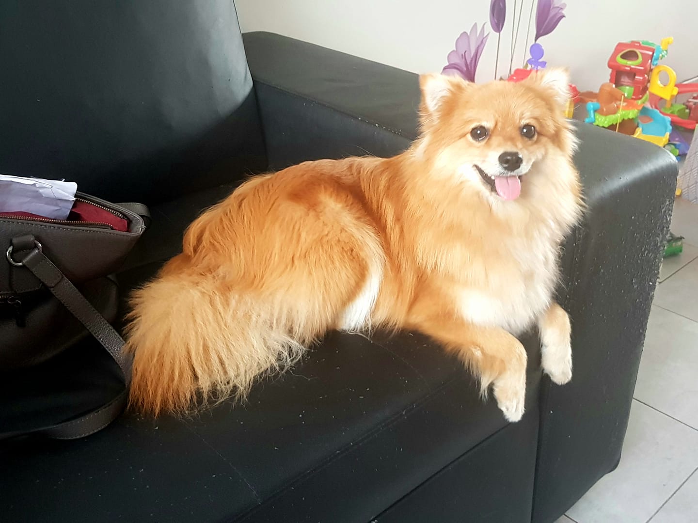 Petit chienne prise en charge par l’association, pendant 1 mois, durant les soins médicaux de sa maitresse